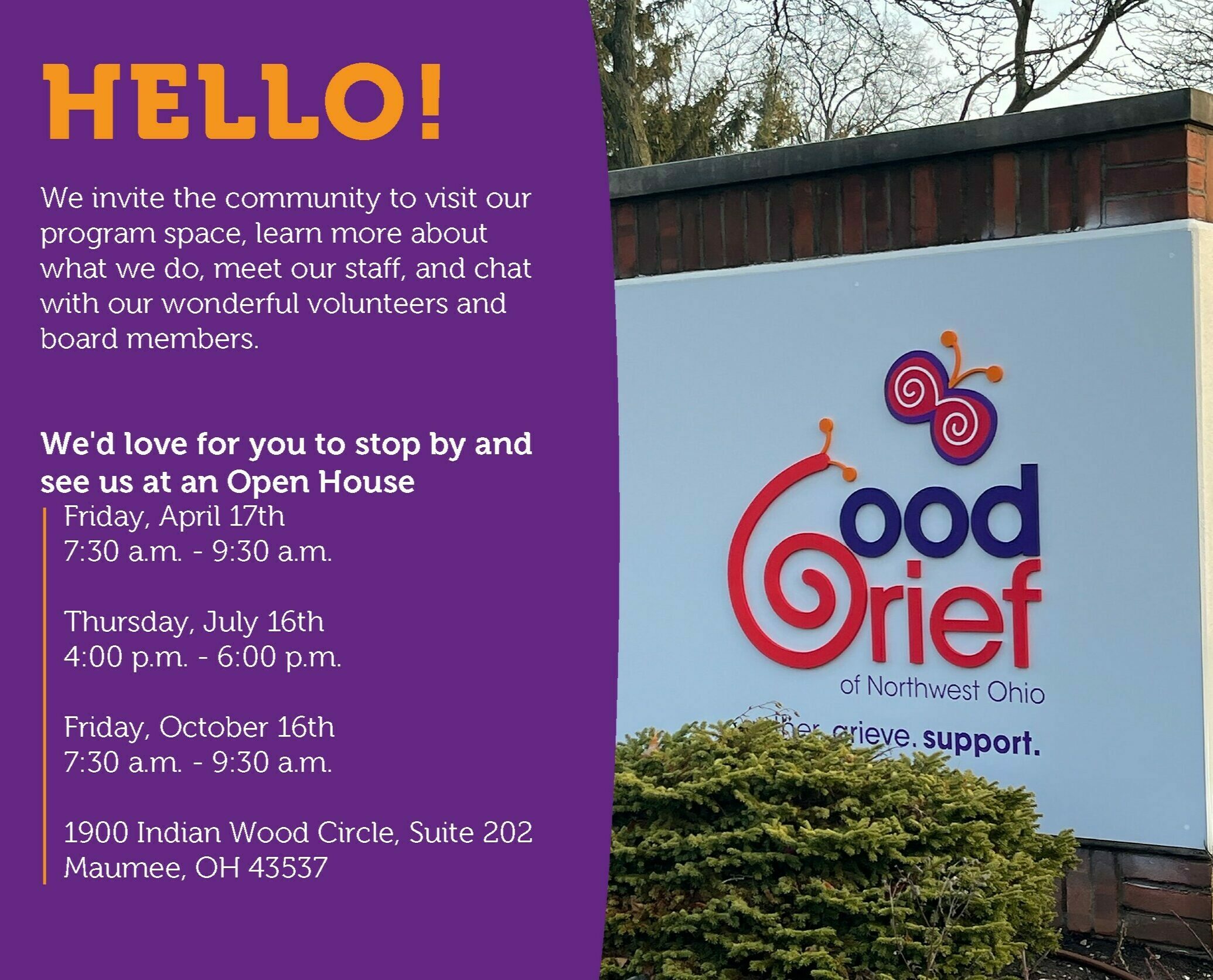 Stop by for a visit to learn more about us and our grief support groups.